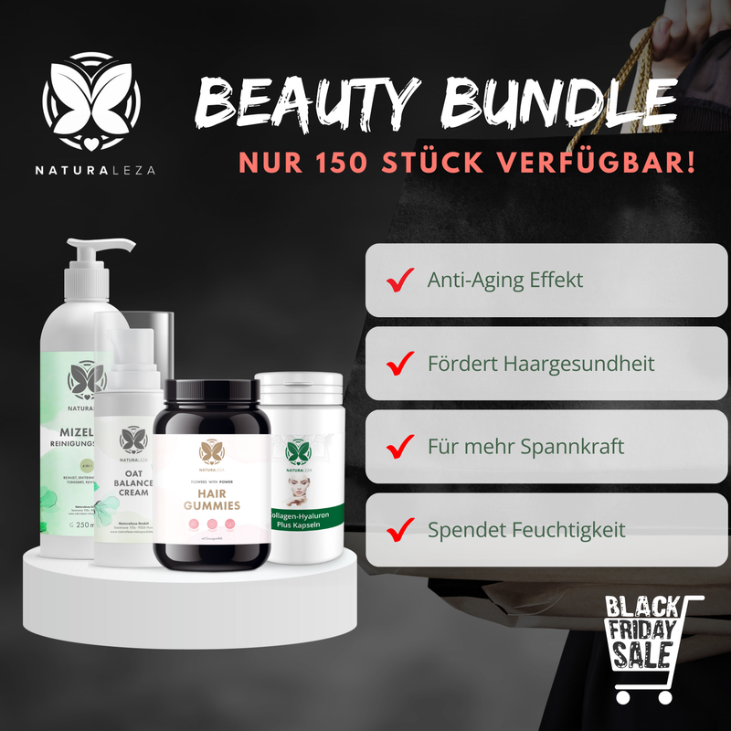 Mit dem Beauty Bundle erhältst du keine oberflächliche Pflege, sondern ein ganzheitliches Schönheitsritual, das innen und außen wirkt – für spürbar gesunde Haut, kräftiges Haar und natürliche Ausstrahlung jeden Tag. 🌷
