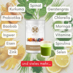 Mit Daily Complete bekommst du alles, was dein Körper täglich braucht, in einem erfrischenden Drink. ❌ Kein Pillen-Chaos, kein Vergessen, kein Stress. Nur 1 Glas pro Tag für Energie, Entgiftung, Immunsystem, Verdauung, Detox, Stressresilienz & Vitalität.