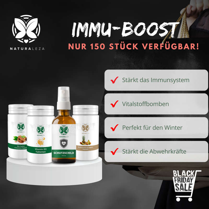 Mit diesem Bundle kombinierst du kraftvolle Pflanzenextrakte und essenzielle Nährstoffe für ein starkes Immunsystem. Die Multivitamin + Ingwer Kapseln liefern wichtige Vitamine und belebenden Ingwer, während die Bio Ceylon Zimt Kapseln antioxidative Power für deinen Körper bereithalten. Der Schutzschild Pflanzenextrakt Spray bietet unterwegs eine schnelle Unterstützung, und die Vitamin D3 & K2 Kapseln fördern deine Abwehrkräfte nachhaltig. Perfekt, um deine Gesundheit mit der Kraft der Natur zu stärken und fit zu bleiben!