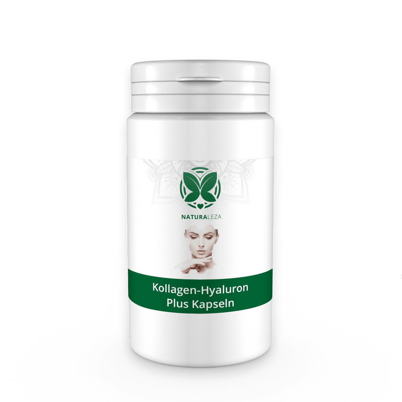 Unsere Kollagen Hyaluron Kapseln liefern Kollagen, Hyaluronsäure, Biotin, Zink, MSM und Ackerschachtelhalm – für straffe Haut, starke Haare, gesunde Gelenke und einen ganzheitlichen Anti-Aging-Effekt.