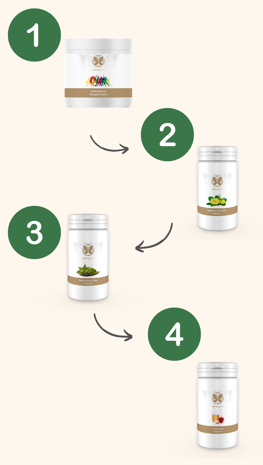 Danach folgt eine gezielte 7-tägige Brennessel-Pause, in der du mit den restlichen 3 Produkten normal weiterfährst.